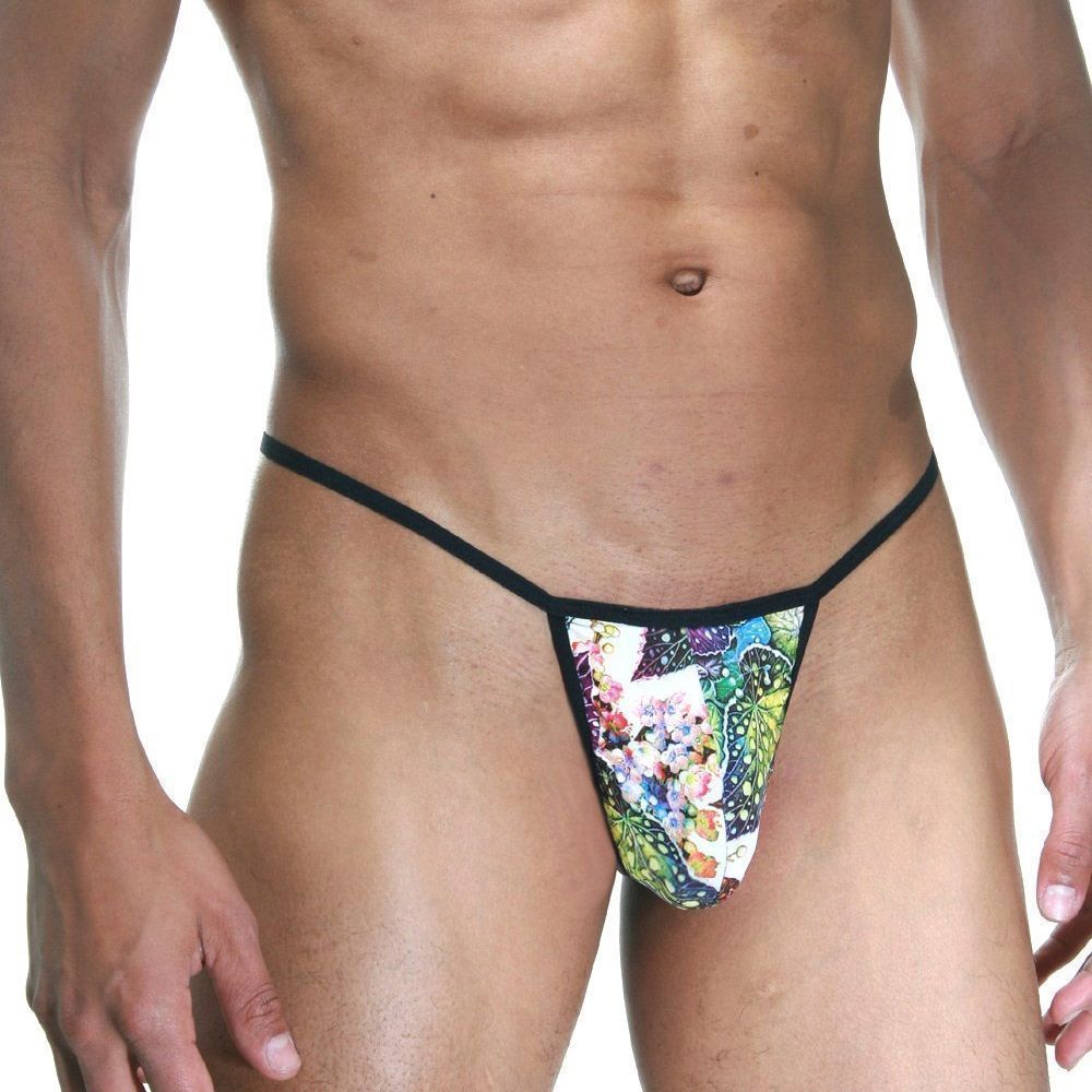 Сексуальные трусы-стринги с цветочным принтом и черной окантовкой.