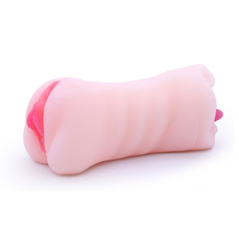 Телесный двусторонний мастурбатор - вагина и ротик с язычком. Очень эластичный и приятный на ощупь.
