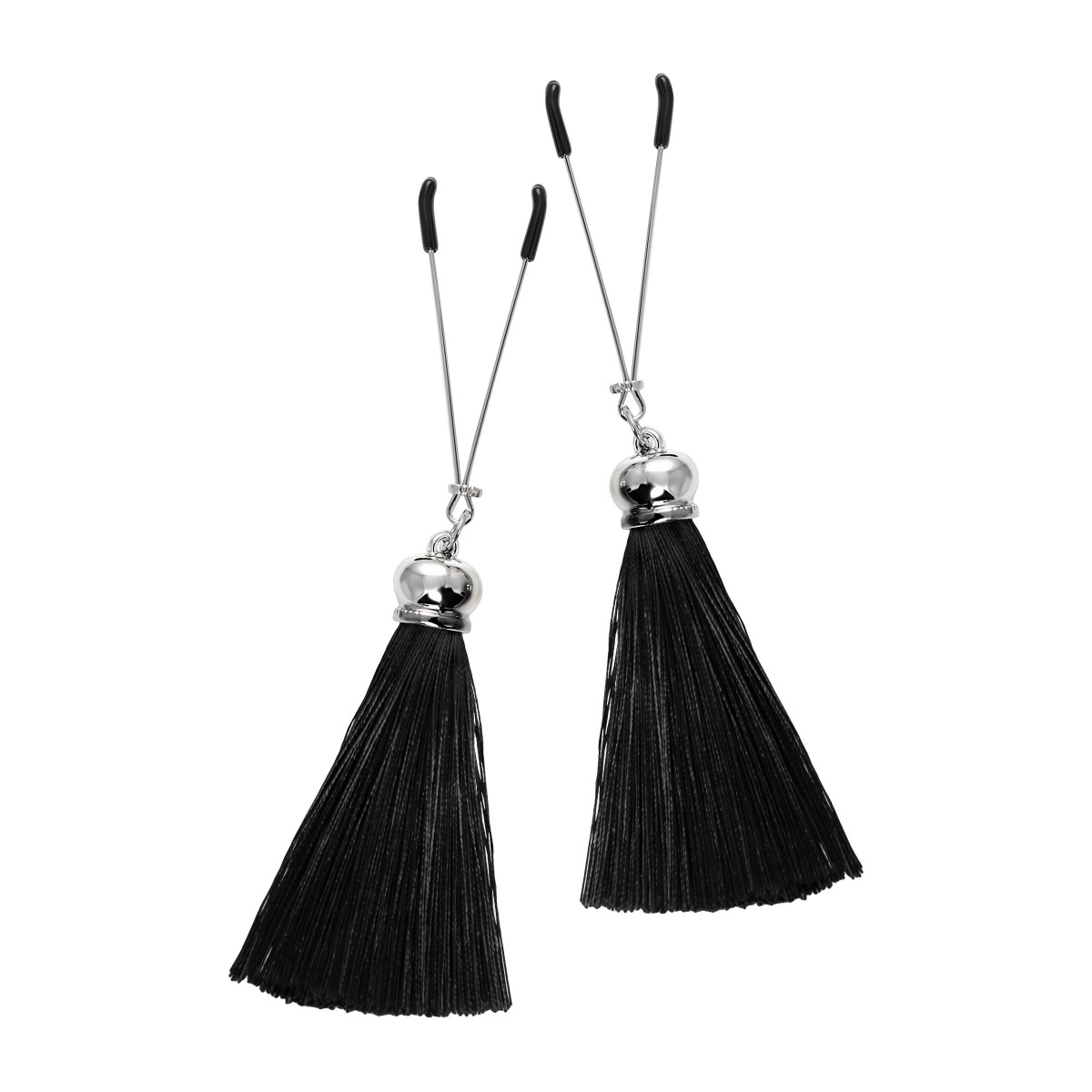 Попробуйте новые, дерзкие ощущения глубокого наслаждения! Зажимы-вилки от Pecado гарантируют смешение ярких чувств от тактильного контакта с нежной кожей сосков. Зажимы выполнены из высококачественных материалов. Металлическая часть компактная, приятная на ощупь. На концах черные резиновые наконечники, для безопасного воздействия на эрогенные зоны. Интенсивность сжатия аксессуара регулируется миниатюрными колечками. В зависимости от личных предпочтений и сценария игры, можно выбрать легкое пощипывание, или сильное сдавливание. Бахрома из натурального шелка, в черном цвете, добавляет манящую красоту смелому атрибуту. При каждом соблазнительном покачивании груди, кисточки движутся в пикантном ритме. Также подходит для стимуляции и возбуждении в области половых губ и клитора.