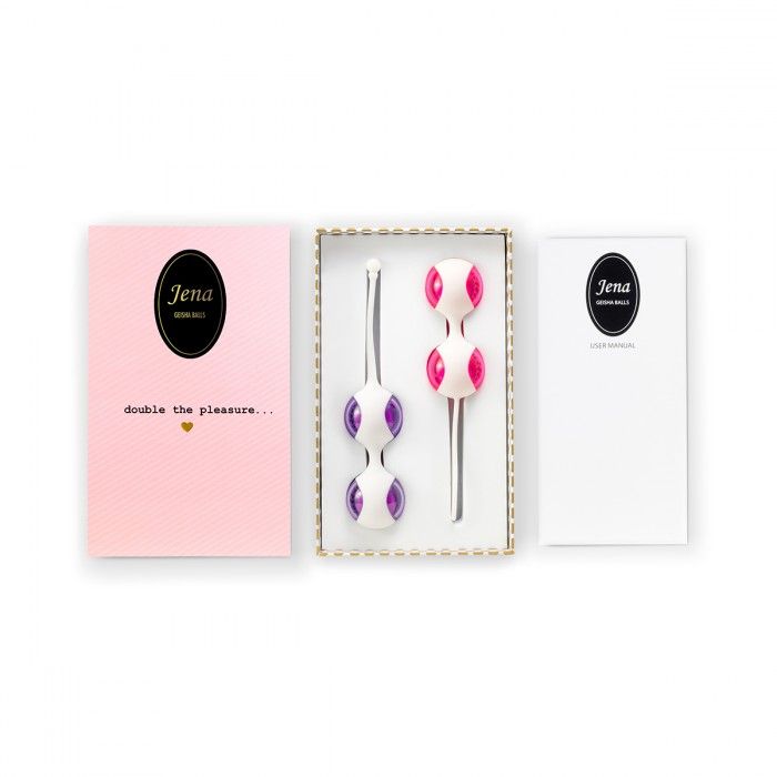 Вагинальные шарики JENA Geisha помогут испытывать более сильные оргазмы, доставят удовольствие во время использования и укрепят мышцы тазового дна. Вы можете носить их незаметно для окружающих, выполняя специальные упражнения, или занимаясь повседневными делами. Когда вы идете, плаваете или занимаетесь другим видом деятельности, движение шариков вызывает тонкое сокращение вагинальных мышц, вызывая сильное приятное ощущение. Если вы только начинаете укреплять мышцы тазового дна, то очень важно постепенно увеличивать продолжительность ношения мячей. Начните с нескольких минут за один сеанс, максимум носите шарики в себе до 30 минут. Придерживайтесь графика наращивания. В зависимости от состояния мышц тазового дна может пройти до 12 недель, прежде чем вы сможете носить мячи в течение 30 минут. Постепенно наращивайте время тренировки. Со временем Вы сможете носить тренажеры все дольше и дольше, так как ваши мышцы тазового дна станут сильнее. В стильной розовой коробочке Вы найдете два розовых шарика гейши по 35 грамм с белым держателем из силикона, и два фиолетовых шарика гейши по 50 грамм так же с белым силиконовым держателем. Вагинальные шарики можно менять в держателях. Возможны 5 различных комбинаций веса. Мягко закругленные формы облегчают введение шариков. Игрушка выполнена из безопасного для тела человека пластика и силикона, без фталатов и свинца. Шарики очень гигиеничны, благодаря легкой очистке: просто промойте шарики в теплой воде с мягким моющим средством. Используйте небольшое количество лубриканта на водной основе, чтобы комфортно и легко вводить тренажеры. Вес розовых шариков - 35 грамм каждый. Вес фиолетовых шариков - 50 грамм каждый.